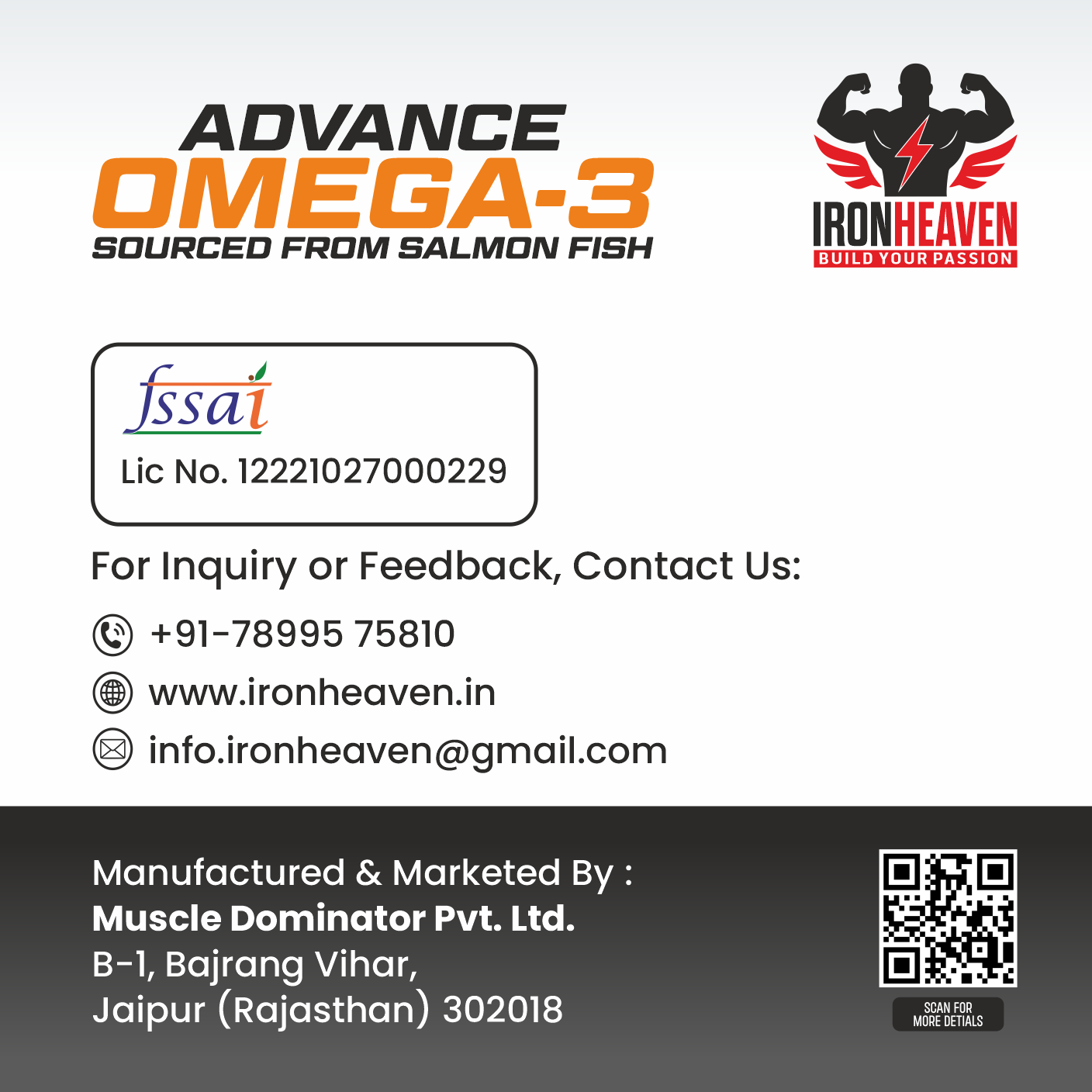 Each bottle contains 60 softgels, ensuring a convenient supply for a full month of daily use. Whether you are an athlete looking to recover faster, a busy professional seeking enhanced cognitive performance, or someone looking to improve overall health, our Advanced Omega-3 softgels are the perfect solution for you.